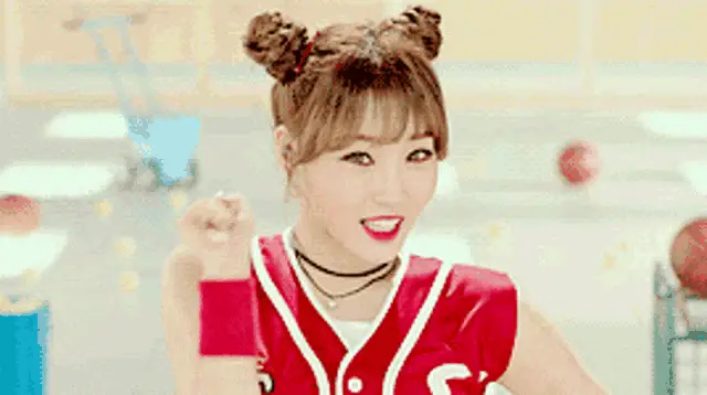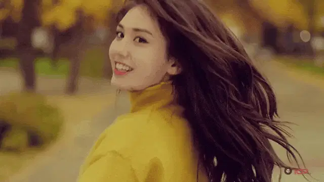 Kim Sejeong smiling sweetly in a close-up shot, wearing an earbud.