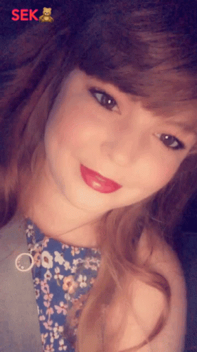 A girl with red lipstick makes a 'shh' gesture, with the word 'SEK' and a teddy bear emoji visible on screen.