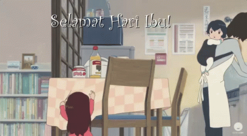 A heartwarming cartoon scene of a mother and child sharing a hug on Mother's Day.
