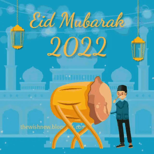 Animated greeting card for Selamat Hari Raya Idul Fitri 1443 H / 2022, featuring mosque and lanterns.