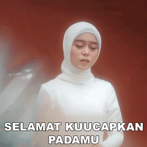 Lesti sings 'Selamat Kuucapkan Padamu' while wearing a white hijab, expressing congratulations.