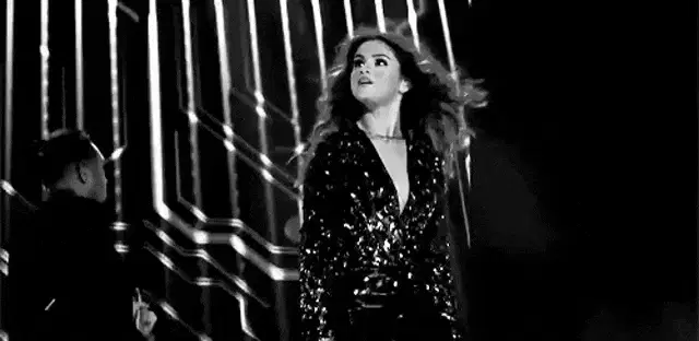 Selena Gomez looks shocked and surprised, with a questioning expression on her face.