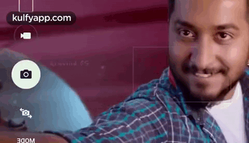Vineeth Sreenivasan smiles while taking a selfie, captured through a mobile camera interface, possibly for kulfyapp.com.