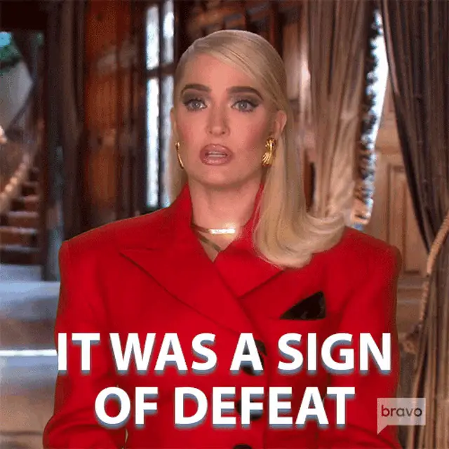 Karen Bachini reacts with 'No Success' expression, covering her mouth with her hand.