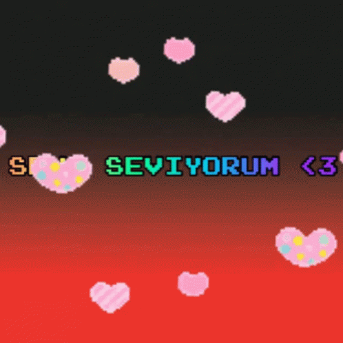 Pixel art hearts float on a gradient background with the message 'Seni Seviyorum Ege <3'.
