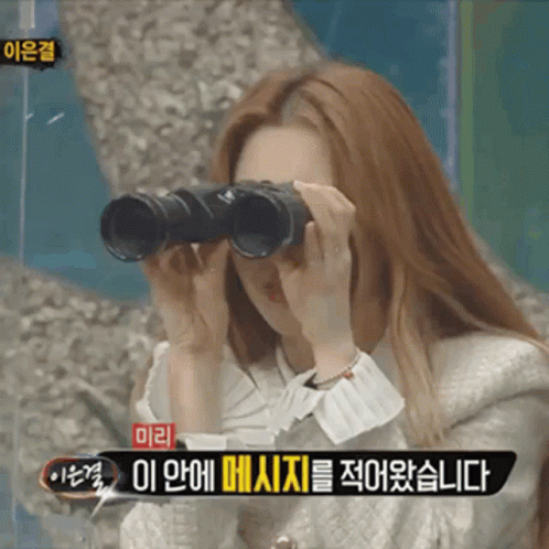 Loona's Heejin, also known as Seocals, looks intently through binoculars on a show.
