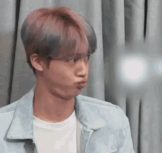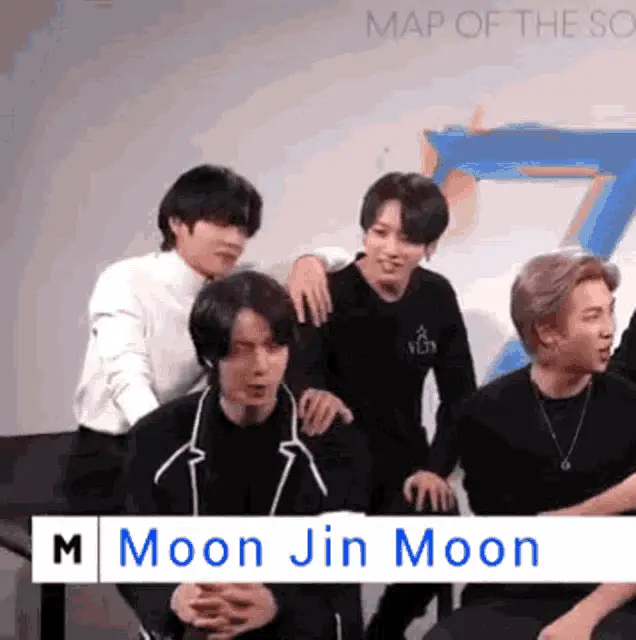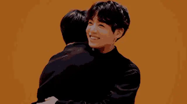 BTS members Jin and Jungkook interact playfully on stage during a concert performance.