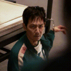 Seong Gihun, player 456, looks intensely in his green tracksuit, reflecting the tension of Squid Game.