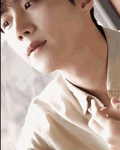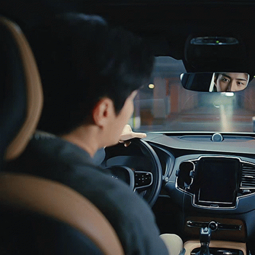 Kim Seon-ho looks back at the camera while sitting in a car, possibly for a Shinhan 'Oh My Car' ad.
