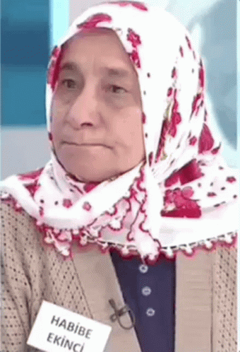 Habibe Ekinci on Serap Ezgü's show Gerçeğin Peşinde, wearing a headscarf, with 'EVET' on screen.