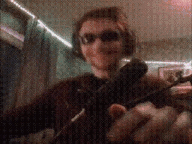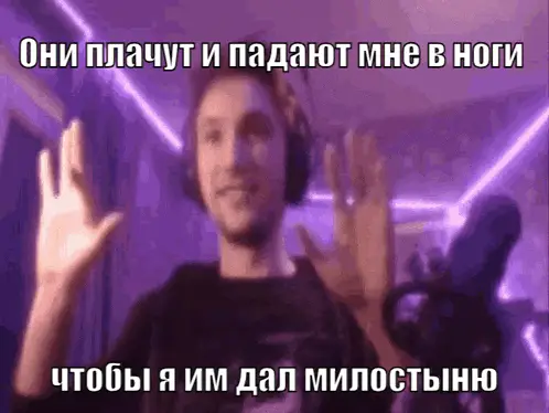 Serega Pirat, wearing headphones and sunglasses, holds a microphone and gestures.