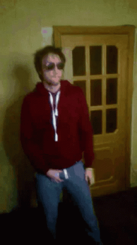 СерегаПират демонстрирует талантливый танец в красной толстовке и очках.