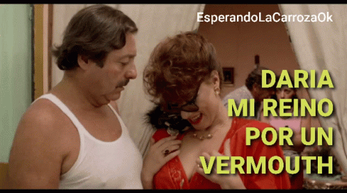 Sergio and Nora from "Esperando La Carroza" in an iconic scene with the famous line "Daria Mi Reino Por Un Vermouth."