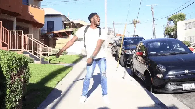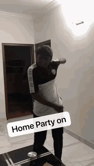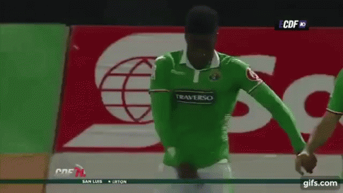 Sergio Santos of Audax Italiano performs a floss dance on the soccer field after a play.