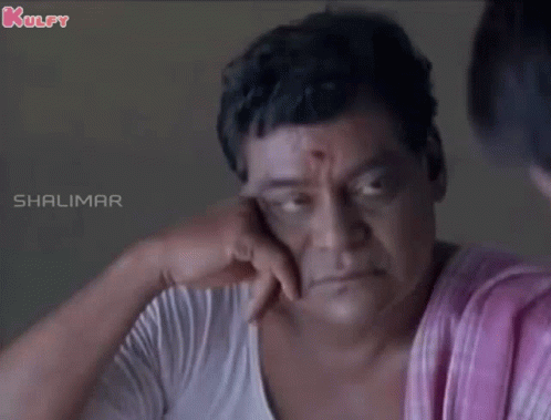 Indian actor Kota Srinivasarao looks serious and intense, captured in a moment of deep thought or anger.