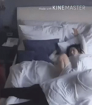 Seulrene and Reneseul share a playful moment on a bed, with one kicking her legs in the air.