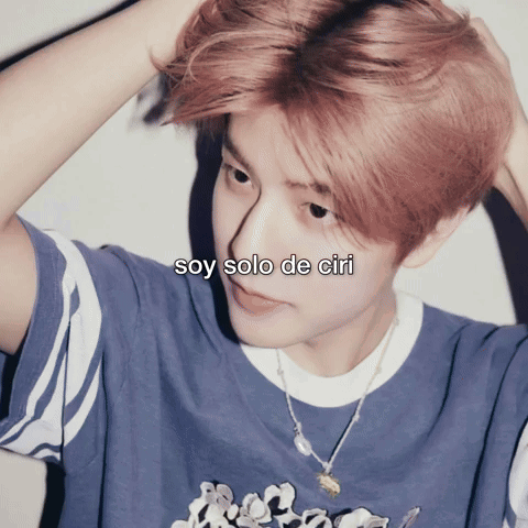 Seungmin of Stray Kids relaxing in a chair, wearing a patterned jacket, and saying 'Soy solo de Ciri'.