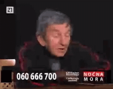 Seva appears on the Croatian TV show Noćna Mora, with a phone number and call rates displayed.