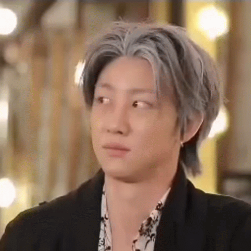 Seventeen's Minghao (The8) with gray hair makes a funny, judging face, holding back a laugh.