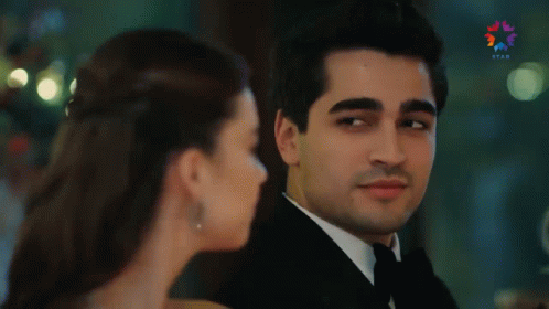 Seyran Ferit and Mert Afra share a moment in Yali Çapkini, with a subtle wink.