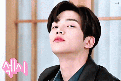 K-pop idol Sf9 Rowoon (Kim Seokwoo) blows a sexy kiss to the camera, showcasing his charming visuals.