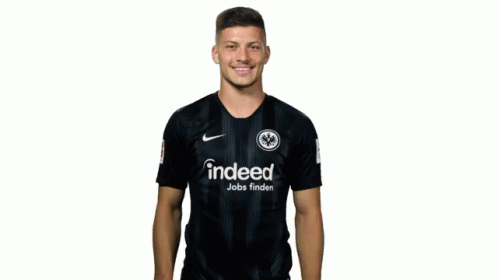 Luka Jović, wearing his Eintracht Frankfurt jersey, makes a loving heart gesture.