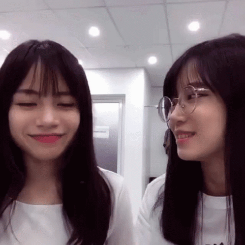 SGO48 members Hikari and Janie share a sweet moment, with Janie leaning in for a kiss, surrounded by heart bubbles.