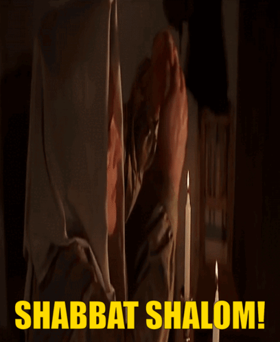 A person lights Shabbat candles, observing the tradition with the greeting 'Shabbat Shalom!'