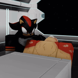 Shadow The Hedgehog performs a head slam on another character in a futuristic setting.