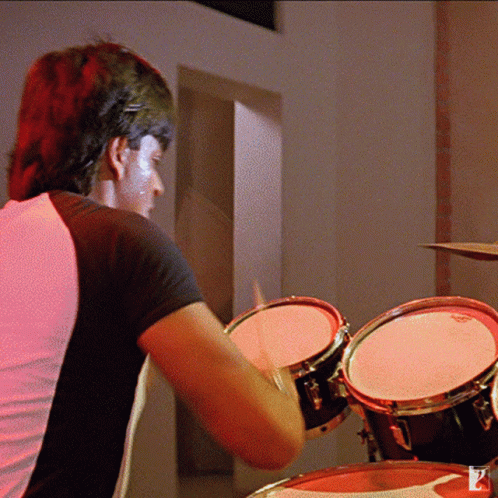 Shah Rukh Khan energetically plays the drums, showcasing his musical talent and passion for music.