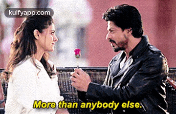 Shahrukh Khan gives a rose to Kajol, expressing his feelings with 'More than anybody else.'