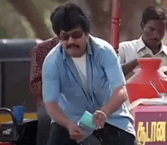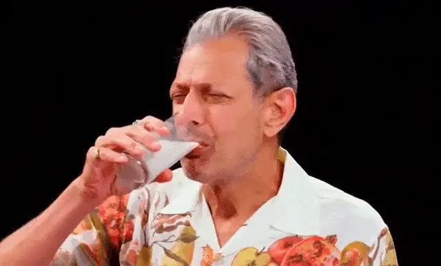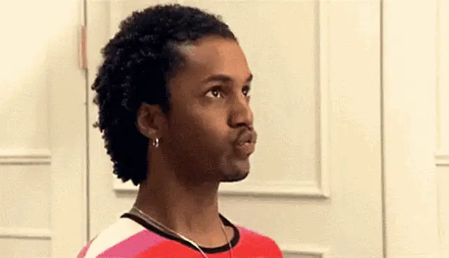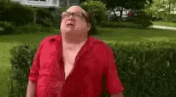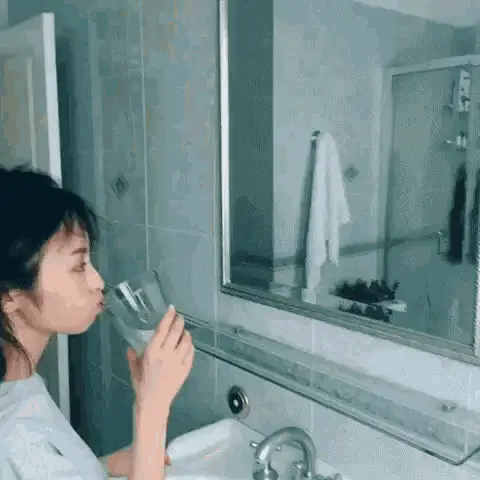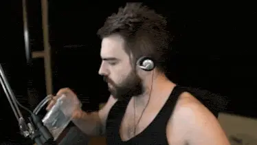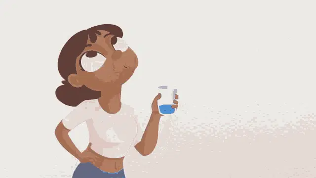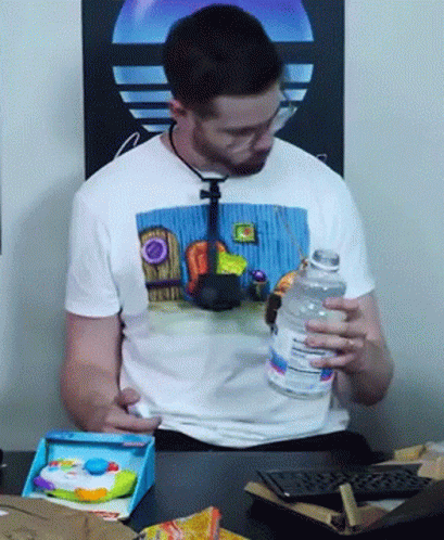 Basically Homeless shakes his head while gargling water from a bottle, wearing a Spongebob t-shirt.
