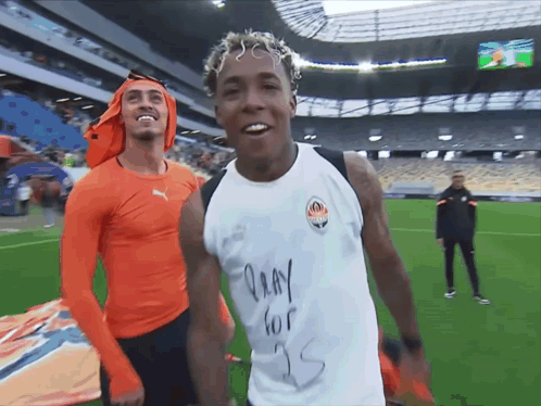 Excited soccer player Kevin celebrates intensely on the field, likely after a Shakhtar vs. Dynamo match.