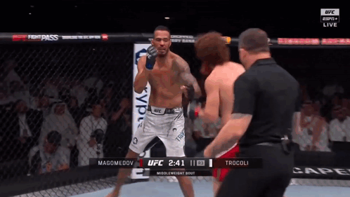 Shara Magomedov and Antonio Trócoli in an intense UFC middleweight bout, featuring Sharaputdin.