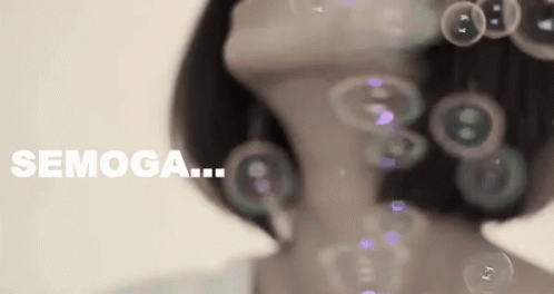 Shareefa Daanish smiles as bubbles float around her, with Indonesian text 'Semoga Berhasil' (Hopefully successful) appearing.