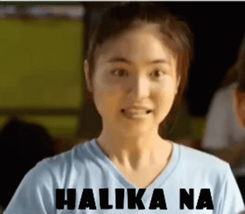 Sharlene San Pedro, wearing a blue shirt with 'Halika Na' text, looks directly at the camera.