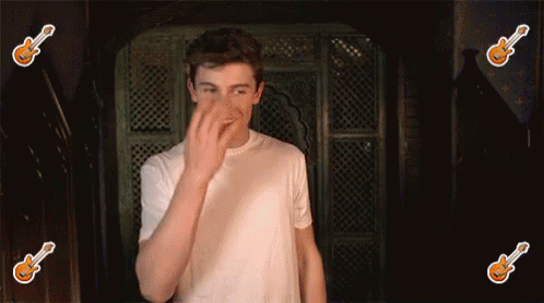 Shawn Mendes runs his hands through his hair, smiling in an indoor setting.