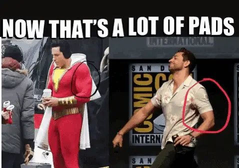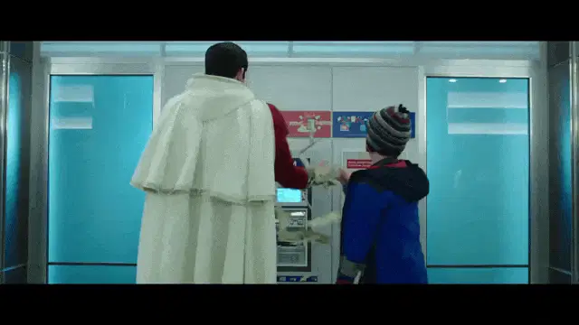 Jack Dylan Grazer as Freddy Freeman excitedly films Zachary Levi as Shazam in a convenience store scene from Shazam! The Movie.