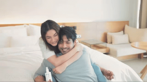 Shehnaaz Gill and Sidharth Shukla share a loving hug in a cozy bedroom setting.