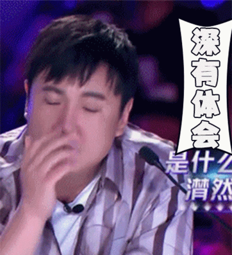 Shen Teng, wearing a striped shirt, covers his mouth looking emotional, with the Chinese caption '深有体会' (Deeply understand).