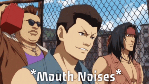Shenmue characters making mouth noises, with the text "*Mouth Noises*" displayed on screen.
