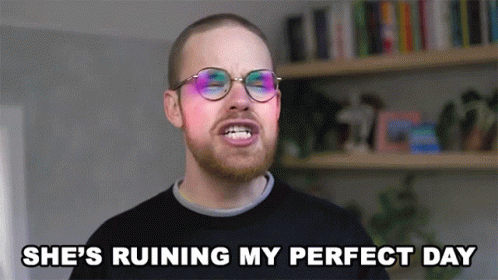 Gregory Brown from AsapSCIENCE reacts with a funny, frustrated expression, saying "She's ruining my perfect day."