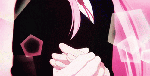 Shikimori, an anime character with long pink hair and blue eyes, shows a range of expressions from gentle to serious.