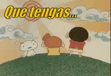 Shinchan, Himawari, and Nevado from the anime series wish you a nice day.
