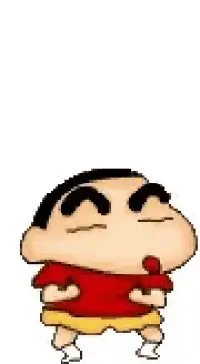 Shinchan stands with arms crossed, eyes closed, impatiently tapping his foot, clearly waiting for something.
