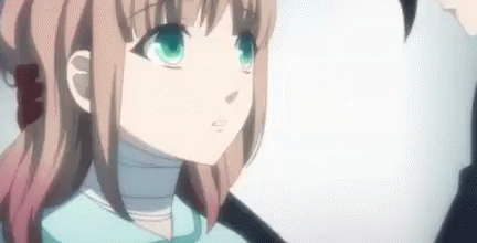Shinhiro Kaori shares an intimate anime kiss with a boy, featuring her distinctive bandaged neck and blue eyes.