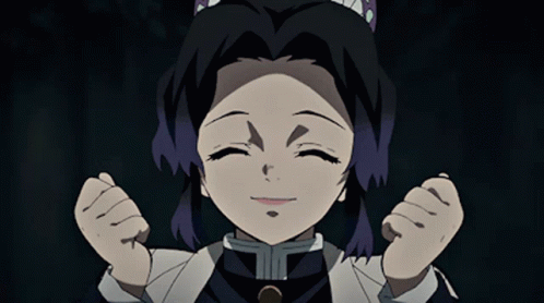 Shinobu Kocho from Demon Slayer smiling and laughing joyfully.