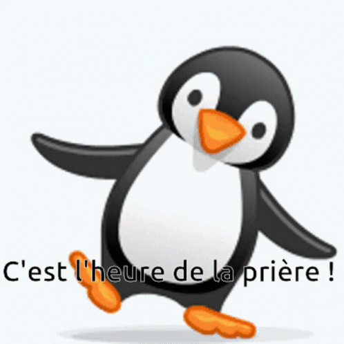 An animated penguin character, associated with Shinto Pinguinisme, announces "It's prayer time!".