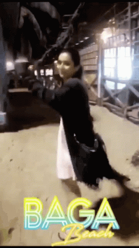 Shivani Surve happily dancing on the sandy Baga Beach at night, enjoying the vibrant atmosphere.