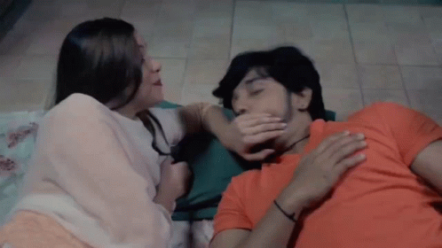 Shivi covers Shiva Raavi's mouth while they are lying down, with a playful or surprised expression.